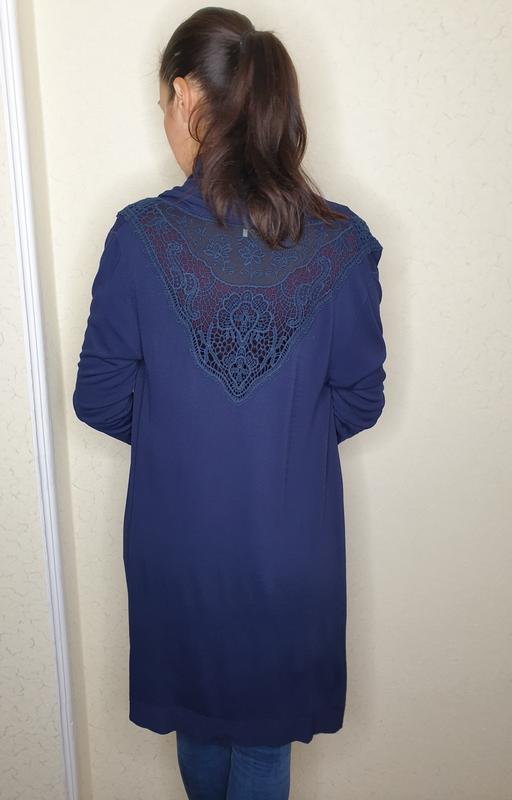 Элегантный кардиган(глубокого синего цвета)с кружевом на спине💕. В таком кардигане ты будешь чувствовать себя комфортно и стильно💃🏻💃🏻💃🏻Фирма Elf(Италия). Наименование 1150560(45.5)❤Размер:М;L.