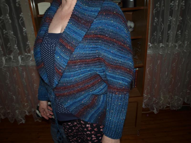 Кардиган очень тёплый, приятный к телу, мягенький.Пряжа производство Германия.Вязала крючком.Размер универсальный от 46 до 52.