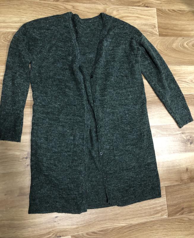 Тонкий кардиган с шерстяной ниткой на пуговках. Есть карманы. Цвет насыщенный изумруд.