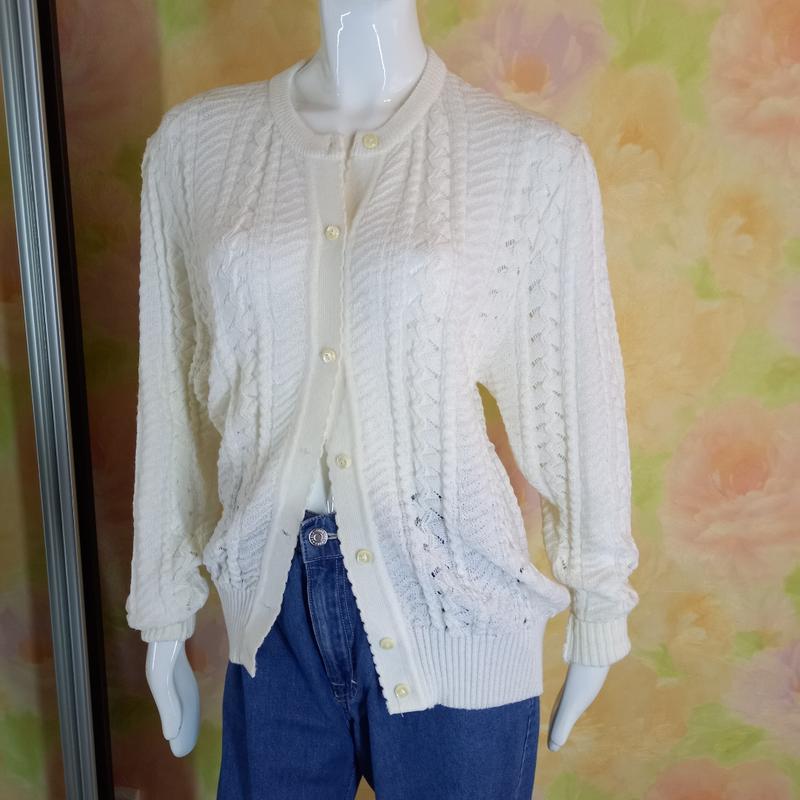 Вязаная ажурная винтажная кофта-кардиган в винтажном стиле, материал приятный на ощупь, к сожалению, бирки отсутствуют.