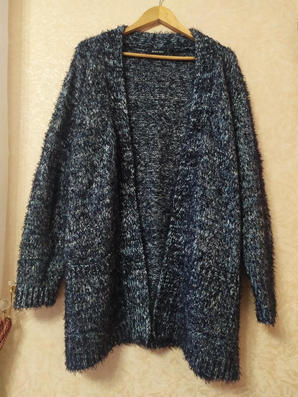 Серый меланж с темно синей травкой. Плотный,мягкий,теплый и не тяжелый. Два накладных кармана. Без застежки. Размер указан- UK-24. ПОгруди-70см, ПОниза-70см, Длина рукава от горловины-80см, Длина-84см.