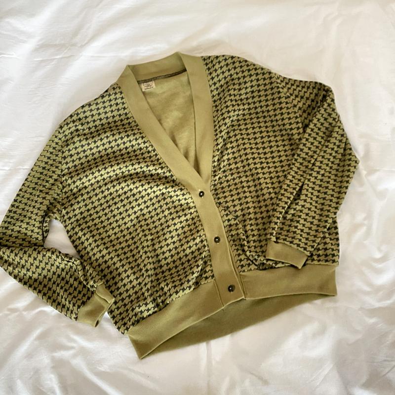 Актуальный кардиган в гусиную лапку с нереально красивым оливковым цветом цвет. 100% хлопок. .