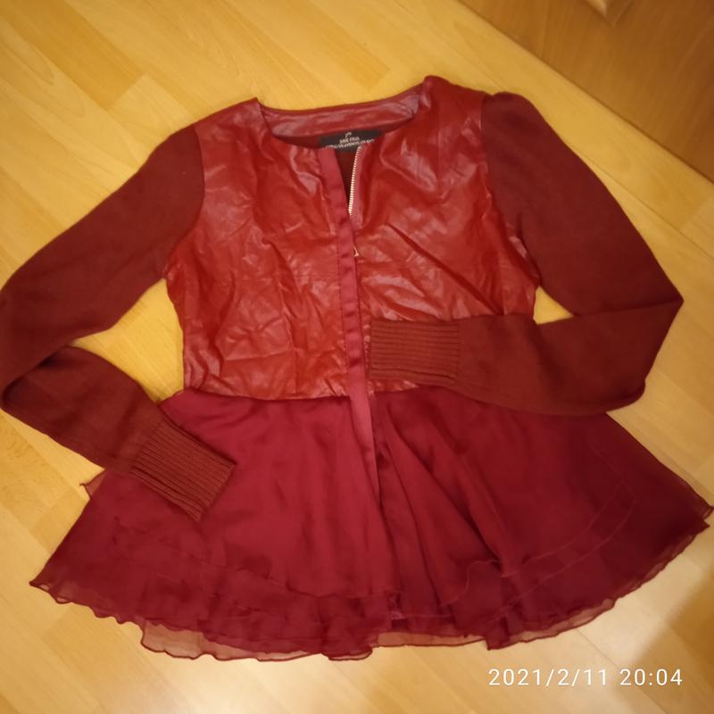Комбинированная кофточка,на модним,низ шифону,очень красивая,новая без бирки.С подплечниками.На 44-46 р Довжина по спинці-37 см плюс оборка-баска-26 см Рукав-71 Пог-45 Плечі-34 Пот-40