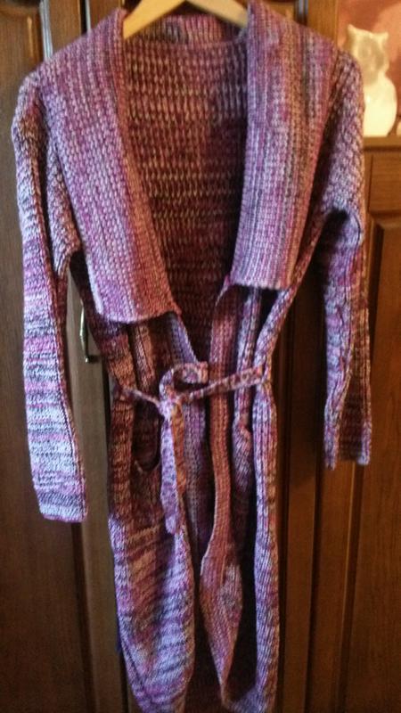 вязаный удлиненный кардиган на прохладную погоду размер 46-48 на рост от 165см,очень приятный к телу.Длина по спине-108,ширина-50см