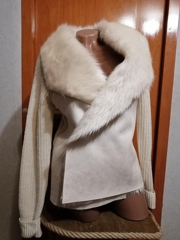 Кофта женская. Б/у. ПОГ 50, ПОТ 46, ПОБ 48, плечи 36, рукав 68, длина 58. Есть дефекты фото 3 – немного примят мех, фото 4 – пятно.