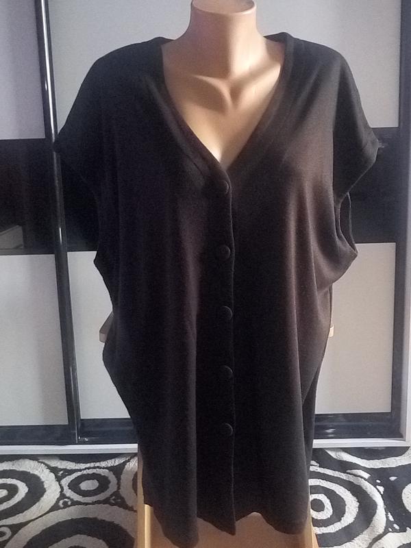 Кофта, кардиган, безрукавка,батал. Гарний стан і якість. Бирки зрізані, візуально розмір XXЛ/ХХХЛ. Застібається на ґудзички. Є трохи ковтунців, бажано почистити. З боків є розрізи18 см. Довжина 80 см. НОГ 54 см. плечі 67 см. Оплата на карту приват банка. Вирушаю уп, нуп, міст