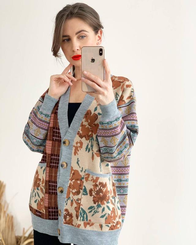 🖤 Кардиган в квітковий принт Кольори: темно-сірий, світло-сірий Ціна 799 грн Розмір: one size, підходить на XS-M до неповного L Фасон вільний Матеріал: машинна в‘язка