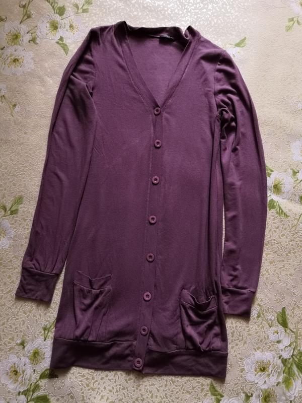 Кардиган blendy, размер С /М. Спереди пуговички, 2 кармана. Длина по средине спины 78 см, плечи 37 см, рукав от плеча 68 см, полуобхват груди 41 см, полуобхват талии 35 см, полуобхват снизу 45 см. В составе 95% вискоза, 5% лайкра.