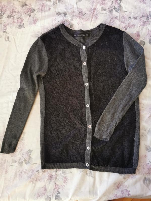 Кофта кардиган zara. Рукав 3/4. Спереді мереживо.