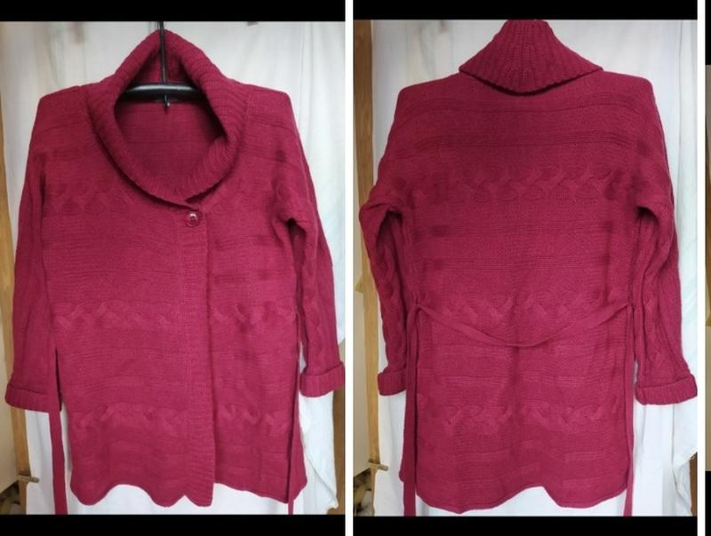 Кардиган на запах, с поясом, вишневого цвета. ОГ 112, длина 82.