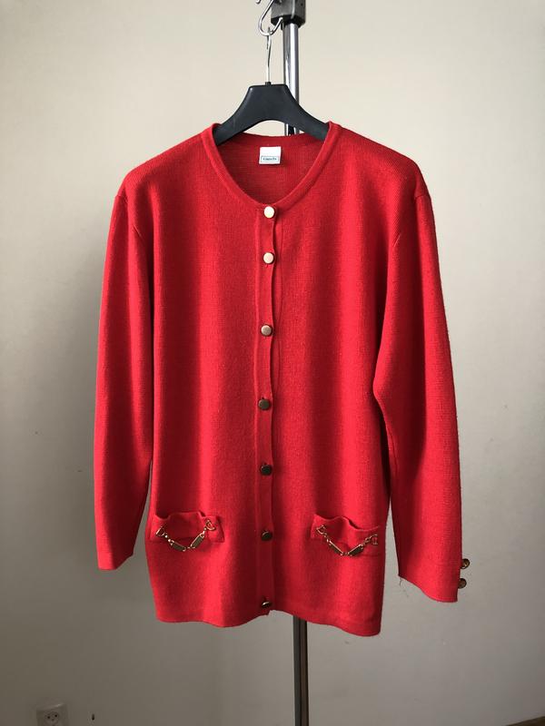 Состав неизвестен, на ощупь шерсть с акрилом пополам. Цвет яркий теплый красный. Длина 74 Ширина 58 Плечи 54, рукав 60