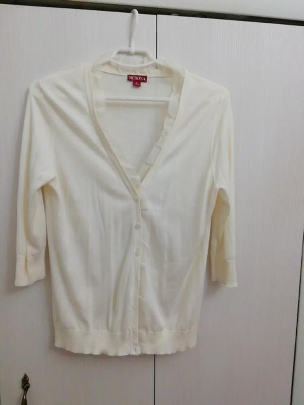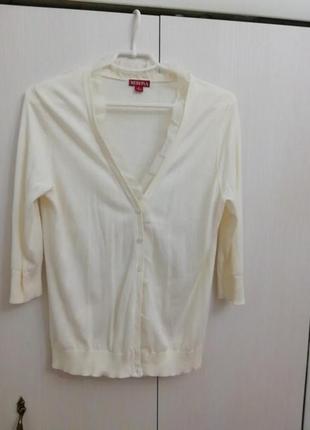 Кардиган красиво декорирован тонкой шелковой тесьмой. Хлопок 100%.разм.38-40. Дл. 63, ПОГ 50,ПОТ 45.
