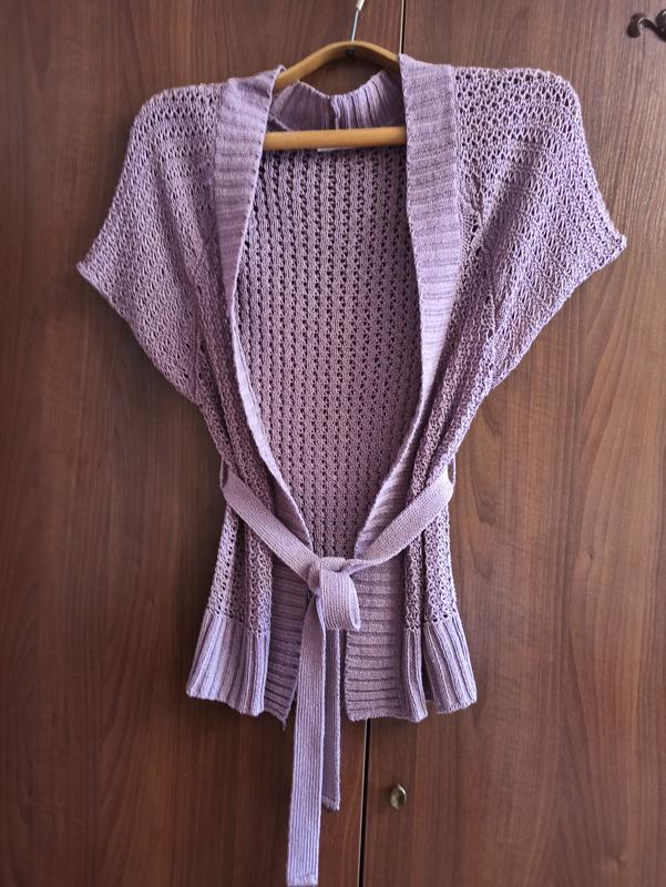кофта б/ у. длина изделия 70 см, рукав спущенный, на запахе с поясом.
