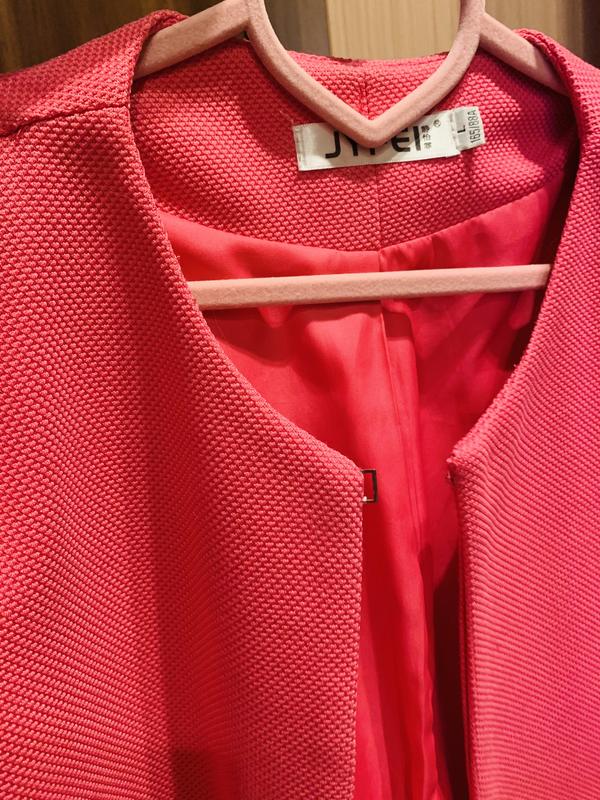 Продам актуальний кардиган кольору фуксії, на підкладці, є деякі зачіпки видно на фото, можна приховати брошкою.