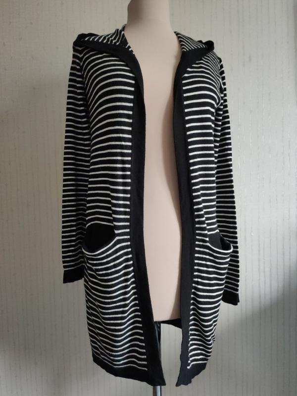 классные полосатый чёрно-белый кардиган резервед с капюшоном мягкий приятный трикотаж модный молодежный бренд 🔥 есть небольшое пятнышко