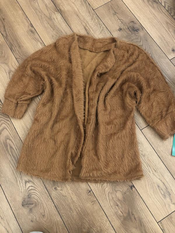 Неймовірний кардиган- травичка, дуже прижмний до тіла, м‘ягесенький. Рукав короткий, з манжетом. ПОГ 50+, рукави зроблені типу мишачі. Довжина 65.