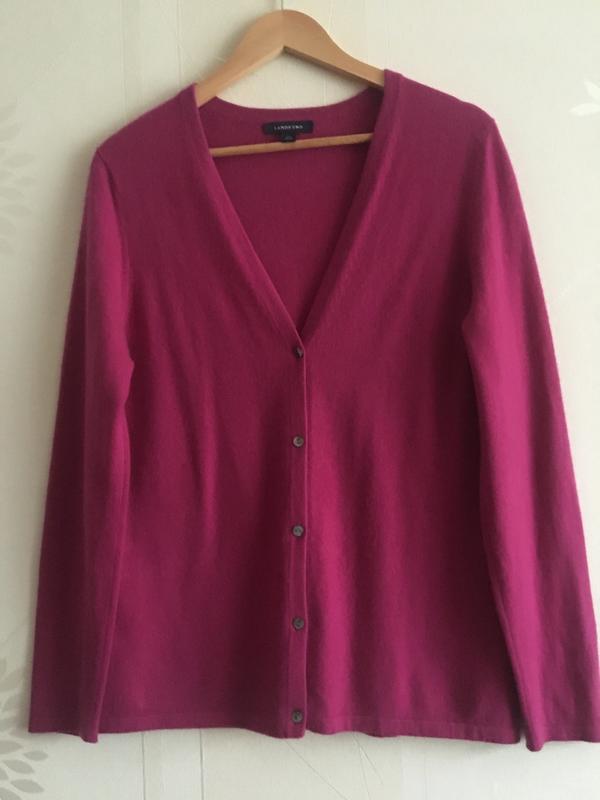 М'яка ,приємна до тіла,тепла кофта кардиган Lands'end p,L 100%кашемір Красивий малиновий колір,хороша якість і стан.Є маленький нюанс,акуратно зашито на шву горловинки ззаду,відбилося на ціні.вказано на останньому фото.Заміри:плечи41см;довжина 67см Рукав 64см; ширина під пахвами 50см