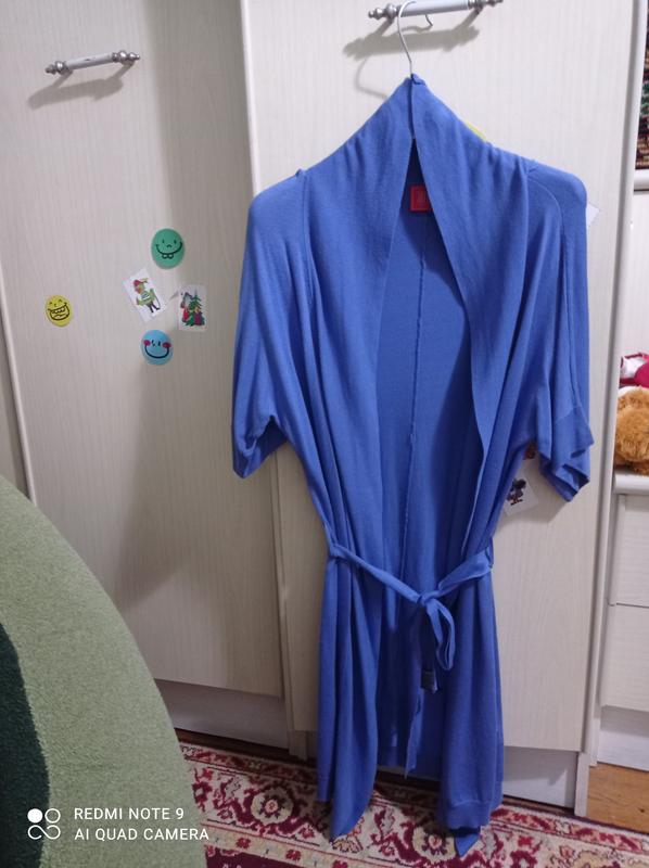 Кардиган сиреневого цвета, рукав 3/4, под поясок, хорошо тянется, трикотажный.