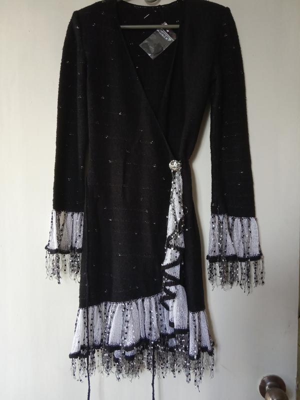 РАСПРОДАЖА! БЕСПЛАТНАЯ ДОСТАВКА! С безопасной оплатой не работаю! Накидка-кардиган на запАх чёрный с рюшей белым, состояние абсолютно новое, ни разу не одевался. Для вашего удобства есть замеры: ПОГ - 40см до 44см тянется отлично, ПОБ - 40см до 50см отлично, ПОТ - свободно, Длина - 85см, Рукав - 60см. Мне не подошла, поэтому вещица ждёт хорошие руки))). Перед оформлением, сначала свяжитесь со мной, а потом уже оформляйте. Возврата нет! Все вопросы задавайте пожалуйста заранее, всем отвечаю!) Отправляю Укрпочтой, НП и Джастин, как вам удобно. Если есть прекрасные предложения, то готова выслушать, а возможно пойти на уступки. Заходите и подписывайтесь, у меня много всего интересного! Хорошего вам дня и приятных покупок!!!)