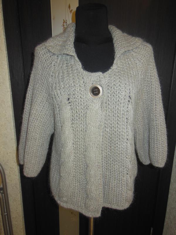 Длина 50, грудь 100 в сложеном виде как застегнут,мягкий, крупная вязка, качество супер
