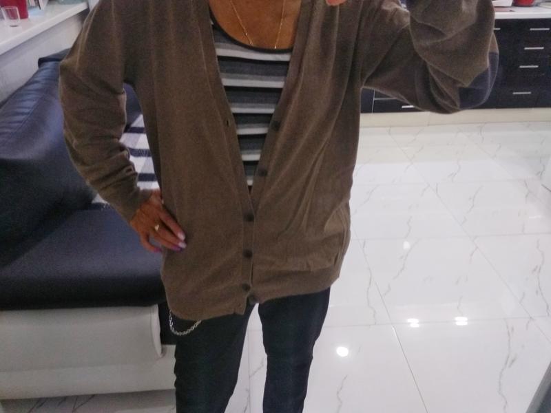 Кардиган 80% Котон,17%полиамид,3% эластана .Состояние нового.Фото на на размере М,подмышки 55 см,плечи 42 см,рукав 68 см,длина -69 см
