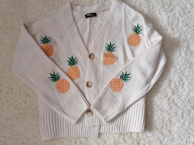 В'язаний кардинан з вишитими ананасами колір молочний розмір універсальний підійде на S, M