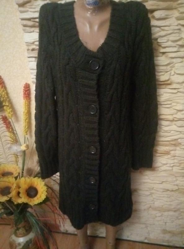 Кардиган ажурный теплый и отлично садится на фигуре полуобхват груди 58, бедир 56, длина рукава от плеча 68, длина по спинке 96 мерки в спокойном состоянии