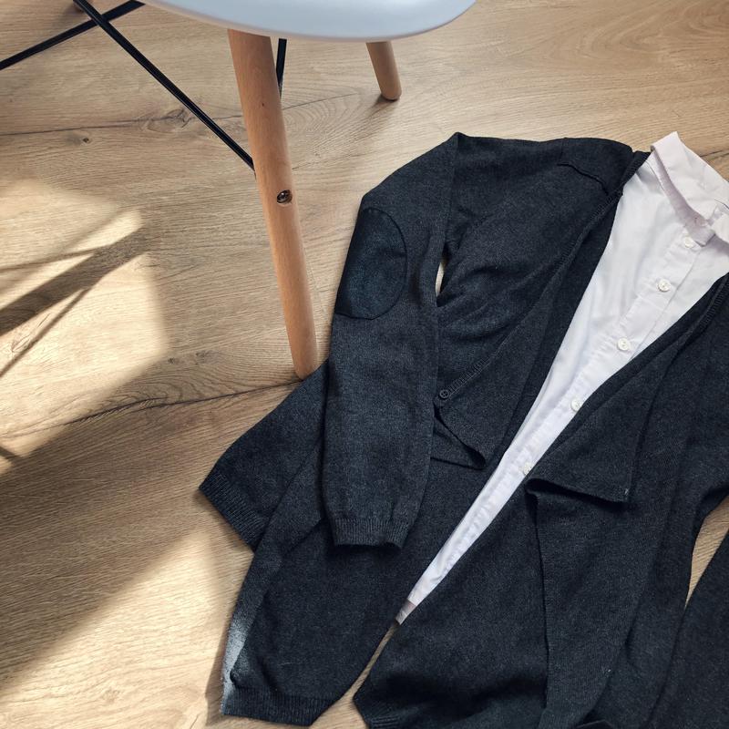 Очень крутой базовый кардиган дорогого бренда Качество на высоте Размер будет и на С и на М Есть пуговки мелкие чтоб застегнуться На локтях нашивка