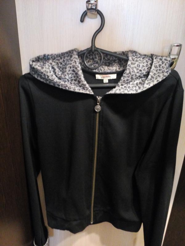 Шикарная очень интересная кофта на молнии с леопардовым капюшоном и манжетами. Внизу внутри широкая резинка. Рукава регулируются отворотом манжета. Капюшон двойной, внутренняя часть леопардовая. Леопардовые вставки с прямым ворсом переливается на свету. Состояние было бы идеальное если бы не один нюанс. Манжет в районе изгиба немного местами потерт. Можно и так оставить при носке не заметно. Либо обрезать манжет, благо рукав позволяет. А может и изгиб будет во внутренней стороне у новой хозяйке) Во общем на вашу фантазию. Размер (16А) примерно 46 Ориентируйтесь на замеры. Длина 52 см. Плечи 39 см. Рукав 62 см. (низ 45 см.) ПОГ 47 см. В приоритете продажа комплектом. Кофта + гольфик леопардовый. Комплект кофта + гольфик 260 грн Отдельная продажа гольфика 80 грн. Гольфик трикотажный в идеальном состоянии. Без нюансов. Тянется. Длина 57 см. Плечи 39 см. ПОГ 39 см. Рукав 59 см. (нижний шов 46 см.)