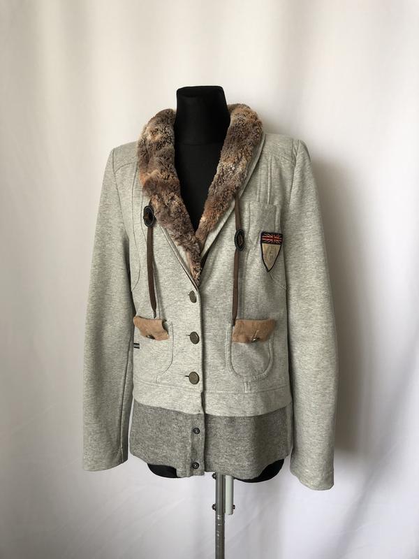 Sportalm серый кардиган с мехом хлопковый трикотаж
