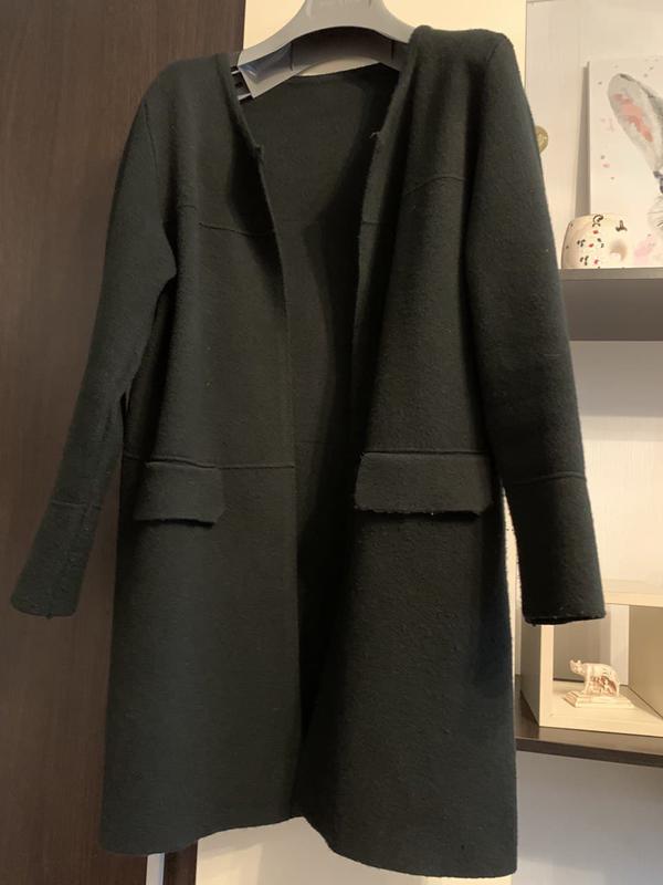 Продам шерстяной кардиган черного цвета. Состояние идеальное, без следов носки, не закошлаченный. Очень теплый. Без застежки. Подойдет на размер S-M