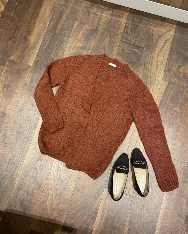 Спущенные плечи. Ширина плеч - 61 см Длина рукава - 60 см Длина - 70 см В составе мохер и альпака. Цвет тёмный кирпич, очень красивый!