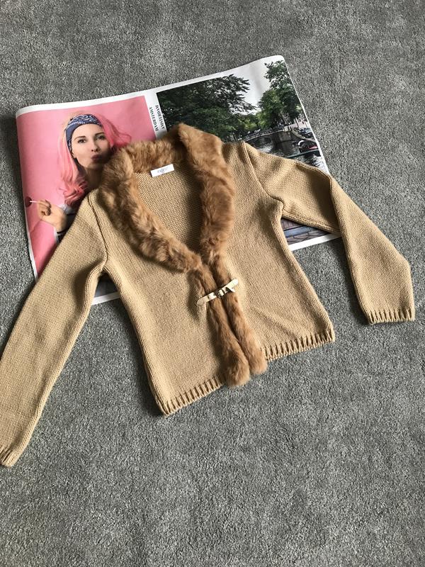 Модний, тепленький кардіган з коміром з натурального хутра, стан нової речі, пишіть, з радістю відповім на додаткові питання