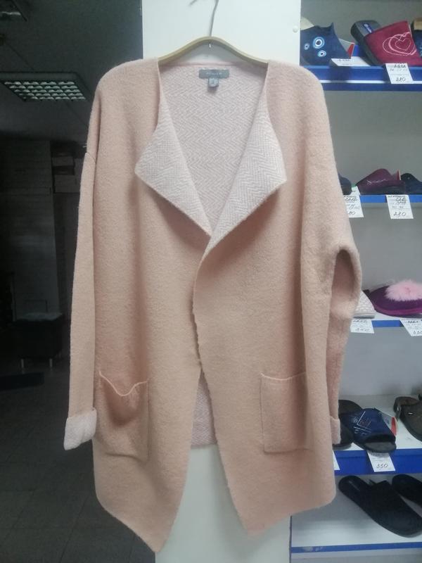 Стильний жіночий кардиган. Гарна якість. Тканина приємна на дотик. Є кишені. Заміри вказала на фото.