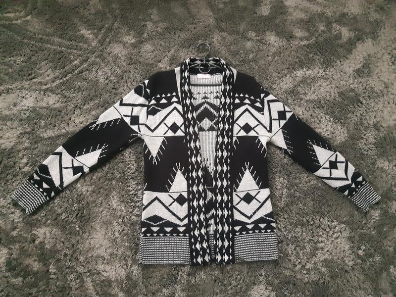 Теплий кардиган в принт, заміри на фото, довжина 72см, пог 50см