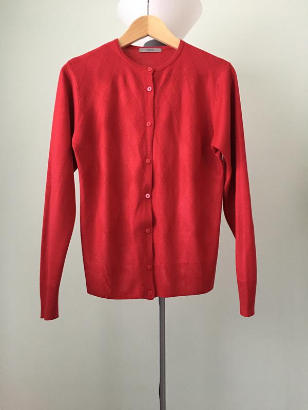Красивий та дуже мягенький джемпер марки «Marks&Spencer». Колір червоний, як на 3 фото, на інших трішки не співпадає, виходить світліший. Стан ідеальний, жодних дефектів. Розмір 14/42/48 Заміри: Плечі - 40 см Довжина рукава - 60 см Пог - 51 см Пот - 48 см Ширина по низу - 48 см Довжина - 58 см Тканина ще тягнеться Склад: 100% акрил Відправка після передоплати 100 грн або повної оплати, будь-якою поштою