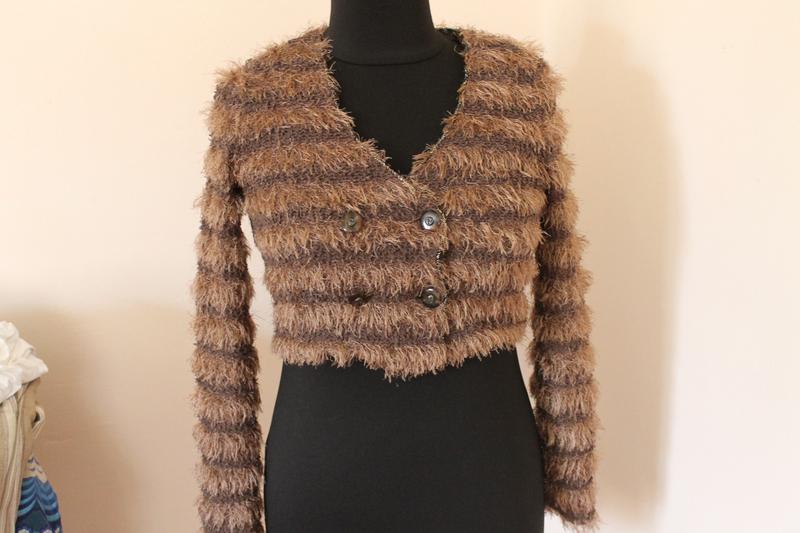 Класна волохата річ,надіслана з Іспаніїї, розмір С вказано, еластична.Довжина-45см,плечі-39див, рукав від плеча-65см,пог-47см.