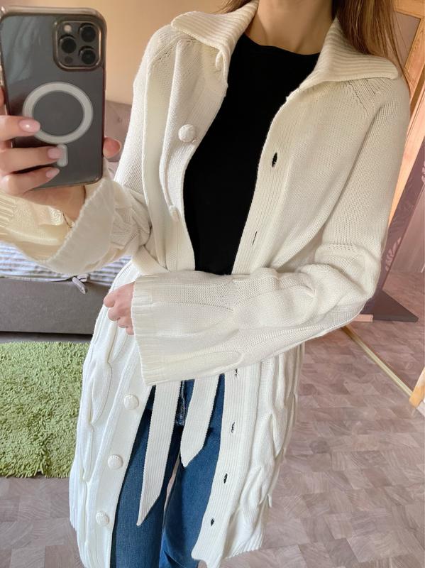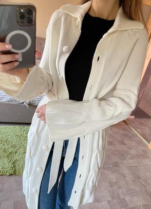 Стильний та теплий в’язаний жіночий кардиган. Довжина 110 см. Розмір S, але може підійти і на М. Рукав розширений. Є поясок. Новий. Бренд “oneA”.