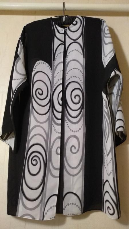нарядный кардиган ПОгруди 54 см ПОталии 54 см ПОбедер 54 см длина 85см длина рукава от плеча 45 см рукав широкий застёгивается на одну пуговку на горловине.