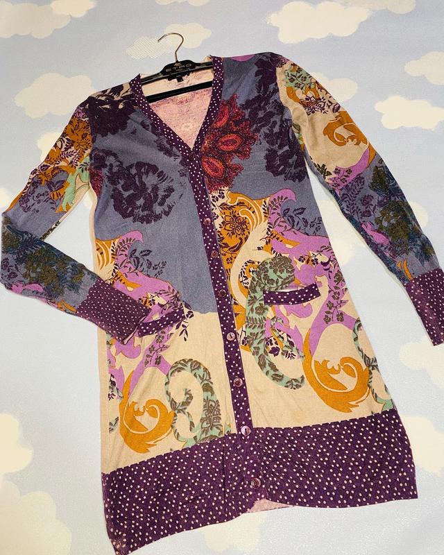 Бренд: ETRO Milano ( оригинал) Размер: XS-S Длина: 77 см ОГ - 80 см Ткань: kashmere 45% silk 55% Состояние: 9/10 Дефект: нет одной пуговки. Цена на сайте: 506€ Цена: 2000 грн