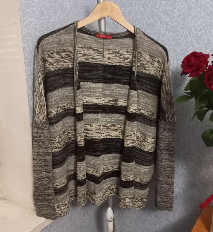 Кардиган EDC (Esprit). Стильный силуэт, серая полоска, спущенный рукав, прямого покроя, без застежки. Размер L, подойдет и на М. Состав: 60% коттон, 40% акрил. Ширина в плечах 45-50 см, в груди, талии-50-52 см, длина 67 см.