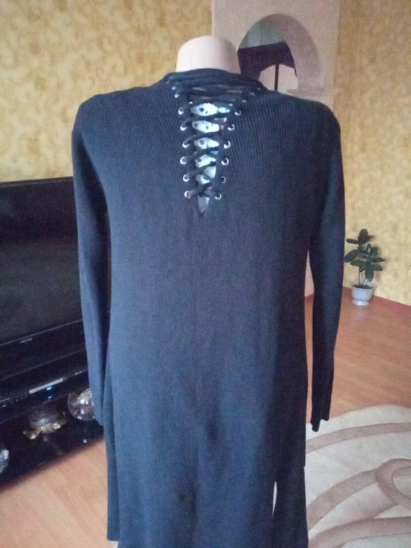 красивый кардиган, есть карманы, сзади красивая спинка, цвет насыщенный черный,без катышков, длина 102, по груди 52,рукав 61