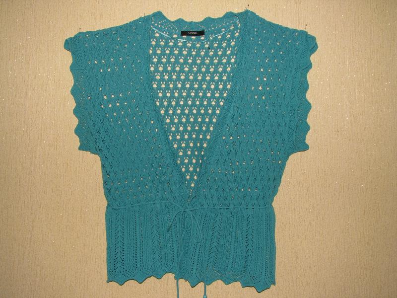Красивая кофточка George. Размер 14/42; плечи - 60 см, пройма - 60 см, ОГ - 92 см, ОТ 90-100 см, длина - 60 см. Состав: 51% акрил, 49% хлопок. В отличном состоянии!