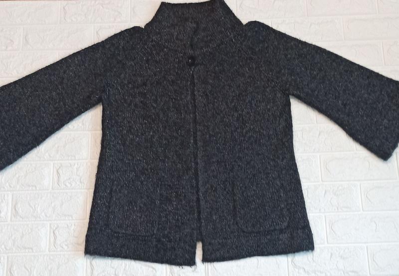 Мягусенький и уютный жакет на 1 пуговице. Есть 2 кармана. Рукав 3/4 . Очень классно под белую рубашку. Состояние отличное.