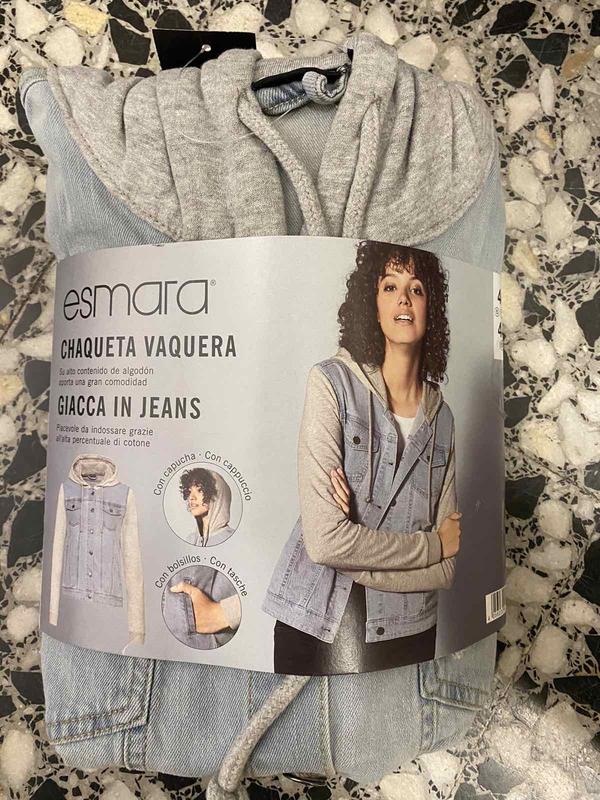Крута джинсовка з трикотажними рукавами на флісі та капюшоном