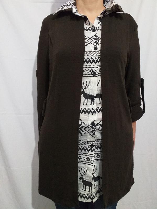 ПОГ 44см, ПОТ 39см, ПОБ 44см, плечи 40см, длина рукава 58см, длина 74см. Фиксация длины рукава.