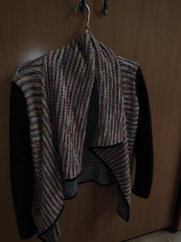 Нить иногда тянется, но становится на место Рукава с одной стороны кожи, с обратной ткань Рукава приспущенные Без застёжки, на запах