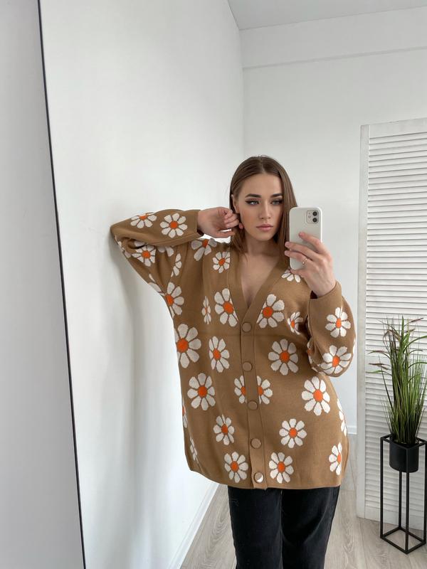 Кардиган в универсальном размере. Можно носить как кофту в расстёгнутом виде, подойдёт под рубашку, гольф, футболку, топ. Размер один.