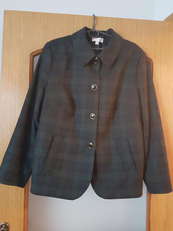 піджак вінтаж ,клітка синьо-зелена,елегантний крій,у складі вовна