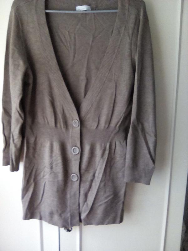 Мягкая кофта серо-коричневая. Рукав 3/4. Подходит на гольфик. Размер 38-40.